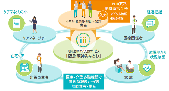今回の実証では、「阪急阪神みなとわ」に、「PHRアプリ*3」や「地域連携手帳」