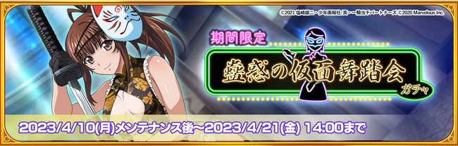 株式会社マーベラス(代表取締役社長 佐藤澄宣/所在地:東京都品川区)は、大人気シリーズ「一騎当千」のAndroid/iOS向け新作ゲームアプリ『一騎当千エクストラバースト』で、2023年4月10日(月)からシナリオイベント「妍姿艶質 仮面チャイナ」を開始したことをお知らせいたします。