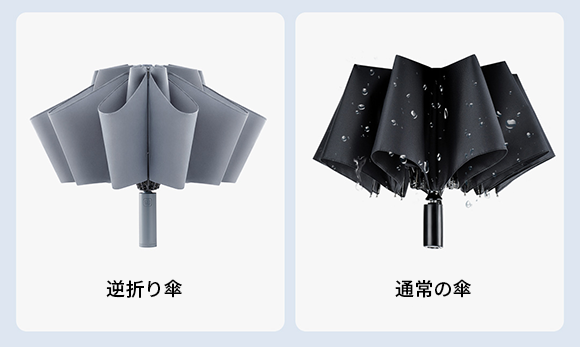 濡れた部分を内側にして畳むため、開閉する際に手が濡れにくく、人混みや電車の中でも、シートや周囲を濡らしません。