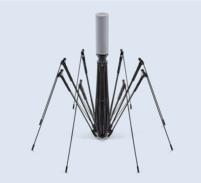 8本の親骨はグラスファイバーやステンレスを、中棒は鉄を採用しているため、軽量ながら頑丈です。テストレポートによると、10m/s風速の5階級疾風に耐えられるそうです。