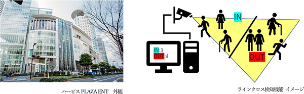 また今般新たに、商業施設「ハービスPLAZA ENT」(所在:大阪府大阪市)において、アジラが2022年12月にリリースしたラインクロス検証機能(設定ラインを跨いだ人数をIN/OUT両方でカウント)等の行動認識AIソリューションによる人流解析の実証実験を開始することとしましたので、お知らせいたします。