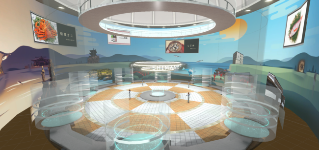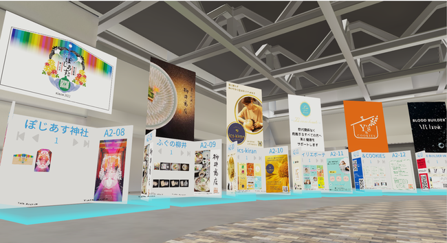 展示会の雰囲気を再現して商品の展示や情報の発信ができ、アバター同士が交流したりライブ配信を楽しむことができます。
