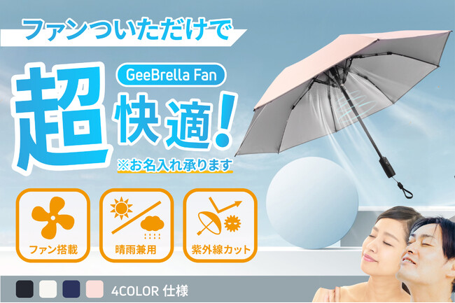 【日本初上陸記念!100セット限定40%オフ】強力な小型扇風機とバッテリを内蔵し、紫外線を徹底的にブロック!猛暑でも快適に過ごせる晴雨兼用傘「GeeBrella-Fan」クラウドファンディング開始