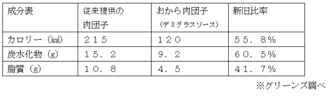 井村屋株式会社における、高たんぱくで多くの食物繊維が含まれるおからの商品化、活用策のひとつとして、また「健康経営」を目指すグリーンズの、ヘルシーなホテル朝食メニューのひとつとしてこの「おから肉団子」はコラボレーション企画として開発されました。