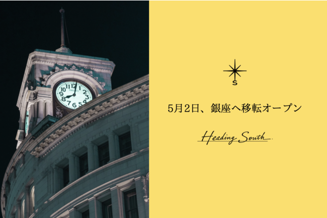 Heading Southは、2020年4月、新型コロナウイルスの感染拡大と同時期に誕生しました。とても厳しい船出となりましたが、お客様やお取引先様、仲間に支えられ、このアフターコロナのタイミングで、より一層のサービス向上とブランドのさらなる飛躍を目指し、2023年5月2日、銀座へ店舗を移転いたします。