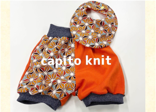 こどもとわんこ時々オトナをコンセプトに優しいニット生地と布帛を使い、かぞくのふく(こども服・わんこ服・オトナ服)を製作しています。浴衣反物など和柄の綿生地とニット生地を合わせた和ポップ・和モダンな展開で秋冬はフリース生地にニードル加工を施したあたたかい服もご用意しています。かぼちゃパンツは、ベビー・キッズ・オトナと3種類のサイズ製作しておりますので家族お揃いでお楽しみいただけます。【代表商品】かぼちゃパンツ 2,640円