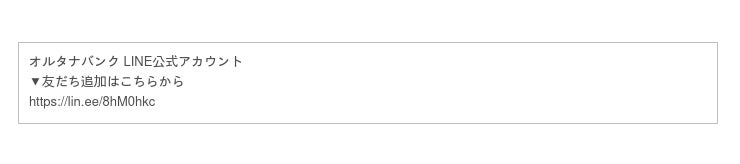 お問い合わせフォーム(お問合せ情報入力):https://www.alternabank.jp/help/inquiry/input