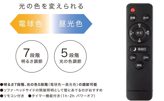 明るさ7段階、光の色5段階調節が可能