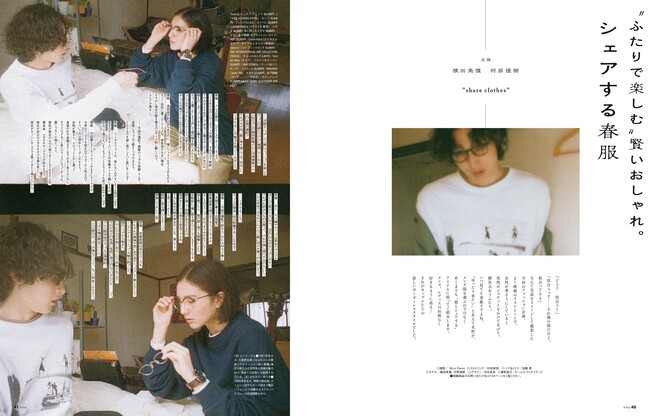 さらにこの号の見どころは、大勢参加してくれた、おしゃれすぎる「ベーシック好き男子」。女子のお手本にもなるファッションスナップ、リアルな声を反映した「メンズ服の着こなし」、ふたりで楽しむ「シェア服」、男子が「共感する」おでかけ服、男子も好きな「すっぴん風」ベースメイク……など、ふたりで楽しめるコンテンツがてんこ盛りです。