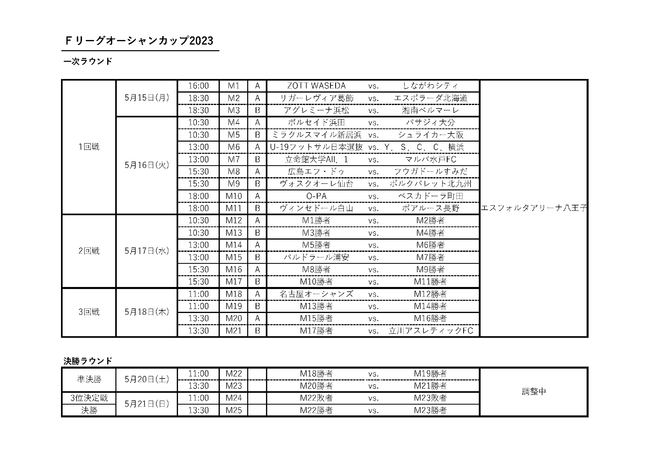 【Fリーグオーシャンカップ2023】開催概要・組み合わせ 決定のお知らせ