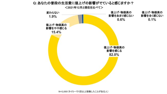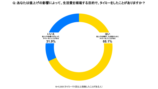 スキマバイトサービス「タイミー」を提供する株式会社タイミー(所在地:東京都港区、代表取締役:小川 嶺)は、「タイミー」の働き手5,080名を対象に、生活者にとって大きな関心事になっている「物価高・値上げ」と「スキマバイト」に関する実態調査の第7回目の調査(過去6回の調査結果は末尾参照)を実施いたしました。