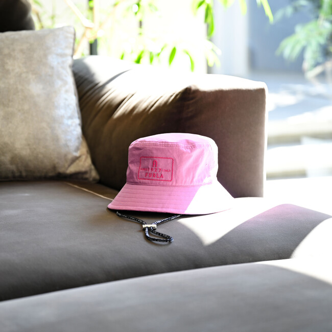 ■FURLA/ロゴ入り紐付きバケットハット/7,700円
