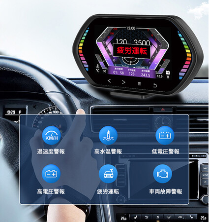 簡単取り付け!OBD2+GPS+傾斜計3in1スマートメーター「KuoWei F12」