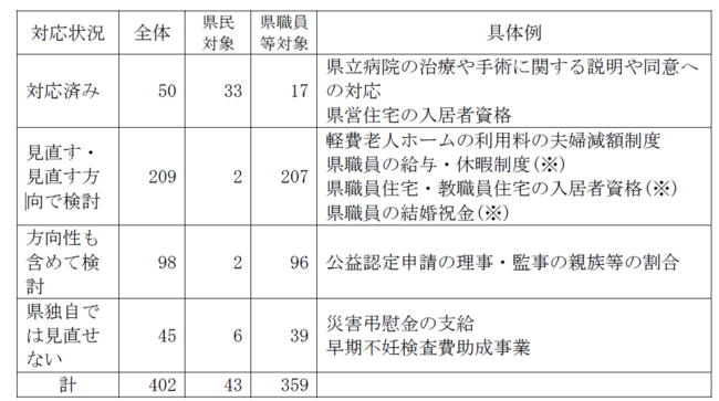そこで、性の多様性を尊重した県の制度や手続きの見直しを実施し、その結果を取りまとめました。