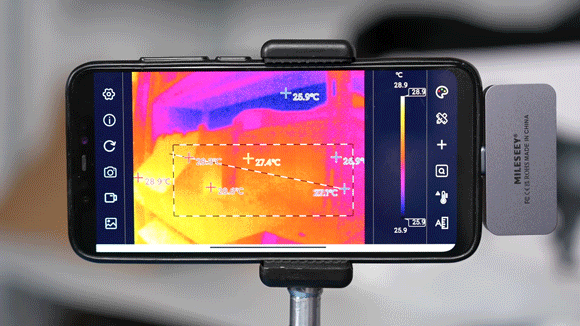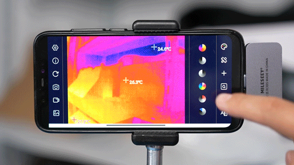 「MILESEEY TR256i&TR160i」は、対象物から出ている赤外線放射エネルギーを検出して温度変換し、温度分布をスマホの映像で表示するカメラを採用しています。