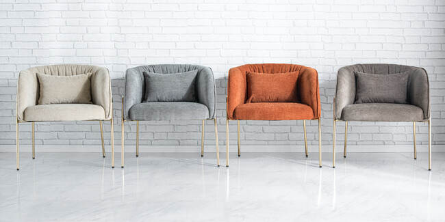 韓国風インテリアのコーディネートにピッタリなチェアが登場!くすみカラーとゴールドフレームがエレガントな空間を演出