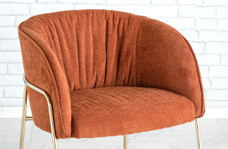 背もたれにはドレープをつけることで上品さを引き立てており、シンプルなシルエットの中にも、余裕のある遊び心を感じることができます。丸みを帯びた形状も相まって、柔らかい背もたれの触り心地が見た目からも伝わってくるようなデザインです。
