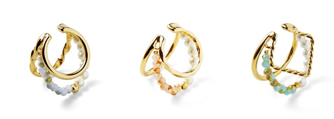 ワンアクションで異素材のきらめきを重ねづけできる時短イヤカフ