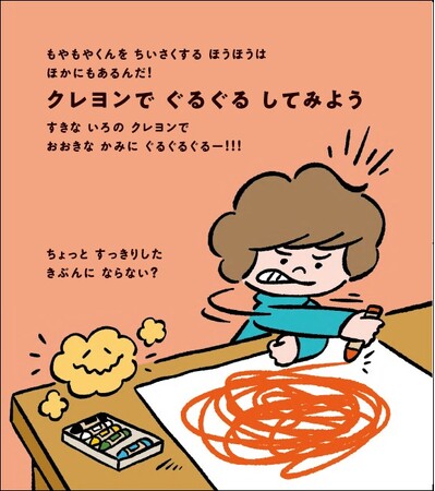 ネガティブな感情を忘れるほど夢中になれる遊びや作業に没頭する“フロー体験”もおすすめです。クレヨンで紙にぐるぐると思う存分書きなぐるだけでもOK。