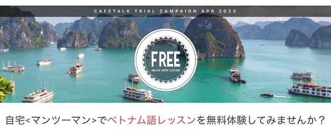 オンラインベトナム語レッスン無料モニター募集ページ https://cafetalk.com/campaign/monitor-extra/language/vietnamese/apr2023/?lang=ja