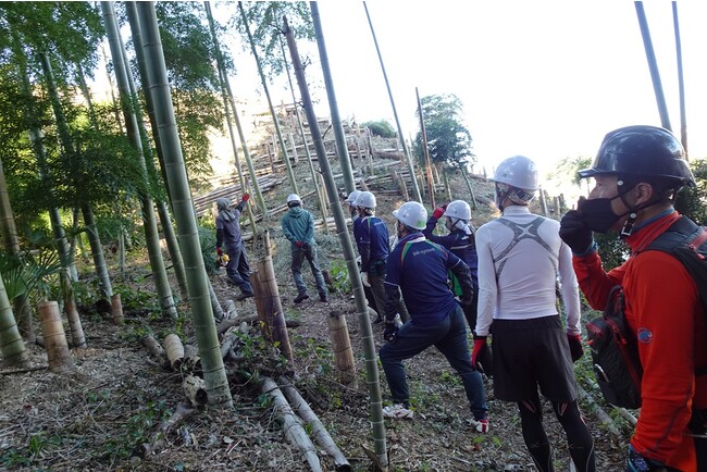 里山体験の研修には、宅配事業の拠点である配送センターに配属される新卒職員8人が参加します。敷地内竹林の間伐やタケノコ掘りなど、里山整備を通して環境保全や自然と共生する社会づくりの大切さを体感します。