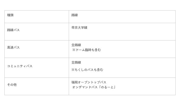 ※小児用nimoca以外は、降車時にカードをタッチする前に「小学生です(こどもです)」と申告してください。【対象路線】西鉄グループが運行する路線バス全路線※特急バス、臨時バスも対象です。※一部対象外路線がございます。【対象外路線】