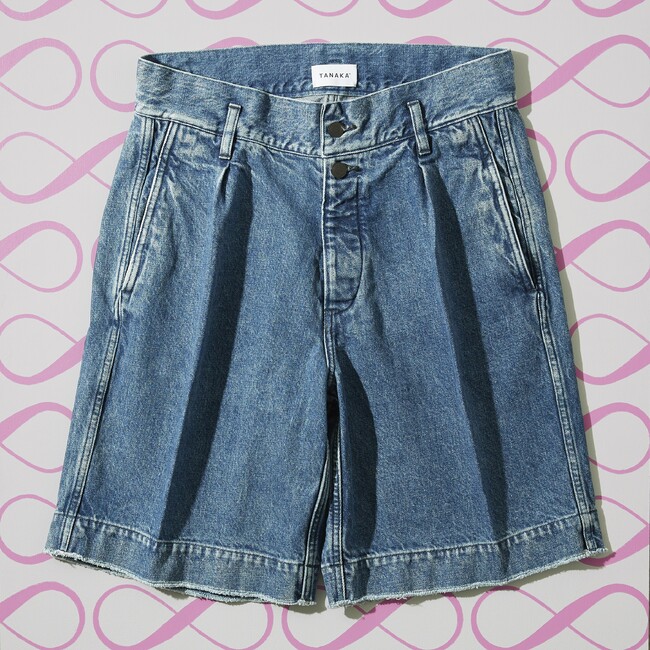“次の100年を紡ぐ服”として性別、世代を超え、永く愛され未来につながる洋服作りをコンセプトに掲げる<タナカ>。今回、ブランド初となるデニムショーツをエクスクルーシヴアイテムとして別注しました。サステナブル背景で洗い加工をほどこしたカイハラデニムを使用した肌なじみのよい生地を使用し、トラウザーから着想を得たリラックス感のある軽快なシルエットが特徴です。ドローコードや裾のカットオフを加えたラフなディテールがこれからの季節の着こなしを新鮮に演出します。