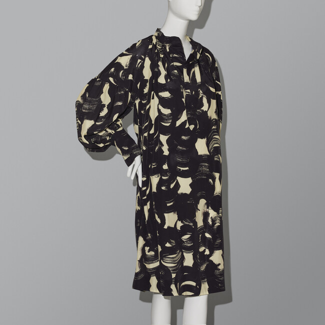 デザイナー モーリー・モロイ氏と元ファッションディレクターでスタイリストのルシンダ・チェンバース氏が2018年に立ち上げた<コルヴィル>。鮮やかなカラーパレットと表情豊かなプリントの組み合わせは、ロマンティックで自立した女性像を表現しています。新作の“メディナドレス”は、ゆったりとしたシルエットでありながら、袖口は細めにデザインし、女性らしさを表現した一着。エスニックなムードのオリジナルプリントを用い、モノトーンでありながらポジティブなオーラ―を放つコーディネートの主役になる洗練されたドレスです。