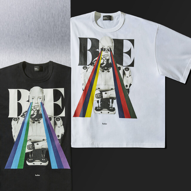 国内のみならず、海外からも高い注目を集める<カラー>。今回、バーニーズ ニューヨーク創業100周年という大きな節目を記念し特別に製作されたグラフィックは、 <カラー>らしくどこかユーモアが感じられます。ロボットにレインボービームとアーティフィシャルな雰囲気のなかに BEREAL と相反するタイポグラフィーを合わせるところなど、異なる要素を絶妙なバランス感で合わせてくる<カラー>ならではの魅力を感じられる一枚です。
