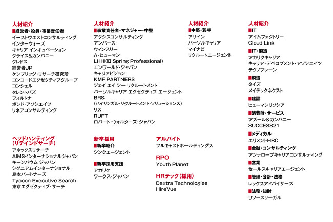 「人材コンサルティング会社&サービスガイド100選」選出会社&サービス名一覧