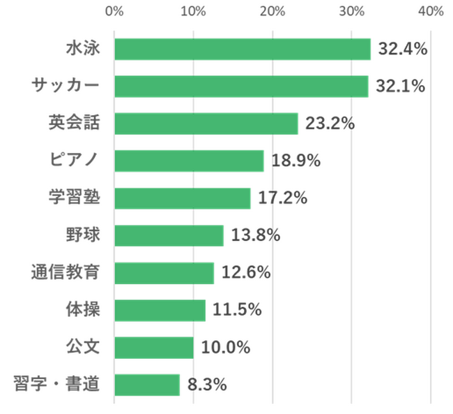 最も人気の習い事は今年も「水泳」、次いで「サッカー」「英会話」が続く