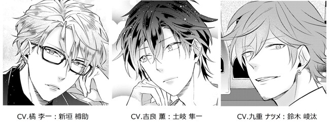メインキャストCV:土岐隼一(吉良薫役)、新垣樽助(橘李一役)、鈴木崚汰(九重ナツメ役)