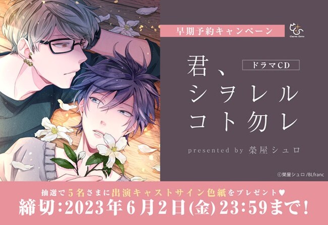 電子書籍販売サイト「ebookjapan」をヤフー株式会社と協力して運営する、株式会社イーブックイニシアティブジャパンは、オリジナルBLレーベル「BLfranc」の人気作『君、シヲレルコト勿レ』(著:榮屋シュロ)をドラマCD化し、コミコミスタジオ・BLドラマCDレーベル「Charme Gatto(シャルムガット)」より6月23日(金)に発売いたします。