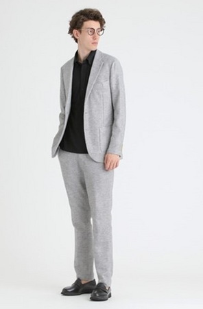 マッキントッシュ フィロソフィー「カラミ織りセットアップ」 ジャケット/39,600円 パンツ/22,000円 (取り扱い:西武池袋本店/そごう横浜店、千葉店) 麻特有の清涼感のあるドライタッチとナチュラルな表情感が特徴 ストレッチ性を持ったラフな着心地に、UV/接触冷感性も兼ね備えた麻混ストレッチ素材です。