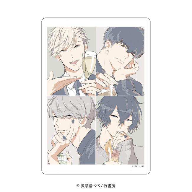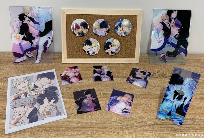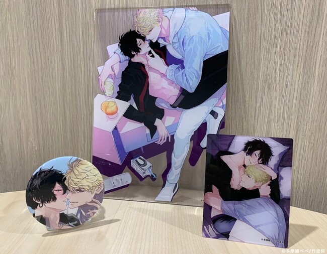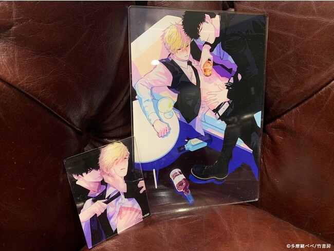 コミックスの表紙絵を使用したアクリルアートボードも登場。ソファで絡まる東くん&優人くん、大我くん&翔音くんを、A5サイズ(148mm×210mm)でダイナミックにご堪能ください。
