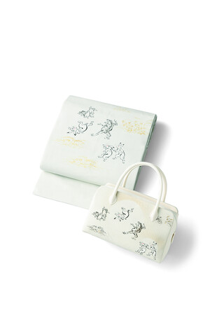 創業安永4年(1775年)、京都・寺町に本店を置く和装小物専門店。「今まで世間に出回っていない、とっておきの帯を創る」というコンセプトで誕生した手描き名古屋帯。鳥獣戯画の繊細な描写が特徴の名古屋帯です。