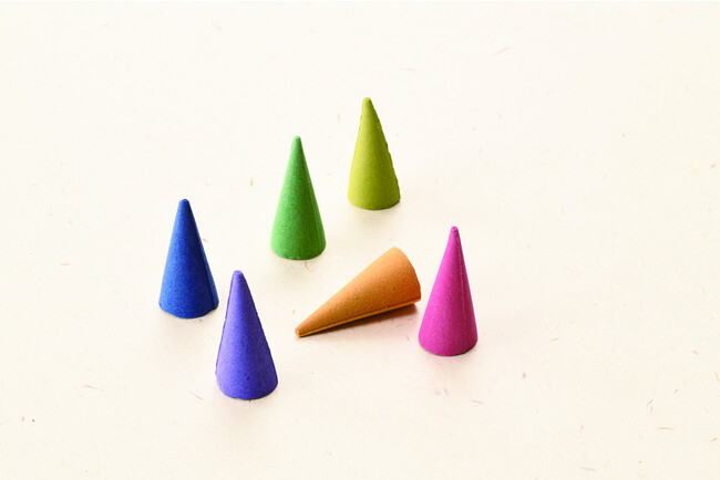 創業300余年、京都御苑の南側に本店を構えるお香専門店。コーン型のお香は下にいくほど燃える面積が広くなるので、香りが徐々に強くなり、短時間で香りを楽しむときに便利です。「六種花世界コーン」は花束のように華やかに広がる彩り豊かな六種の香りが楽しめます