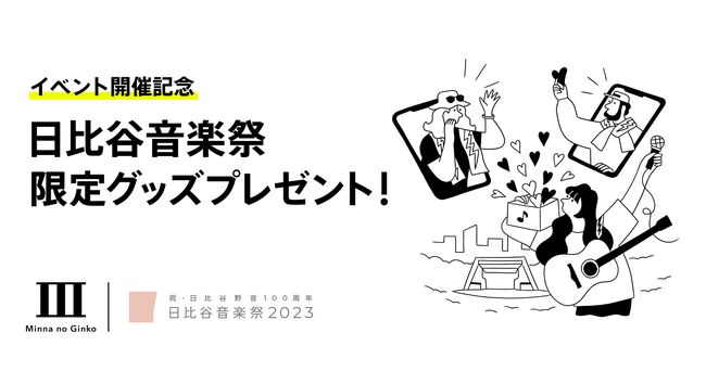 株式会社みんなの銀行(取締役頭取 永吉 健一、以下「みんなの銀行」)は、日比谷音楽祭実行委員会(実行委員長 亀田 誠治)が運営する「祝・日比谷野音100周年 日比谷音楽祭2023(以下、日比谷音楽祭2023)」への協賛を決定しました。日比谷音楽祭2023を応援する取組みとして、音楽を愛するファンの方々と日比谷音楽祭2023をつなぐ「日比谷音楽祭Cheer Box」及び「日比谷音楽祭、Cheerコード」を本日より開始すると同時に、これを記念したキャンペーンを実施します。