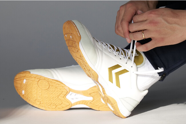 「自分がこういうことをほしいとお願いしたアピカーレになっているので、今回はカラーリングがメインです」と語る清水選手。17歳でFリーグデビューを飾ってから、タイトルに縁がなかったが、昨年10月には日本代表でアジアの頂点に立ち、3月にはフウガドールすみだで全日本フットサル選手権を制した。「2022-23シーズンにタイトルを取れたのは、個人的にも大きな出来事になりましたが、この靴を履いて、もっとそういうところに向かっていきたいし、より高みに昇っていきたいという想いを込めました。ホワイトにゴールドと王道ではありますが、ピッチでも輝きを放つ存在でありたいと思います」とカラーリングについて説明した。