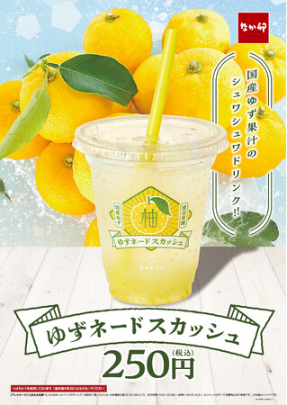 株式会社なか卯(代表取締役社長:向山 陽 本社:東京都港区)が展開する丼ぶりと京風うどんの「なか卯」は、4月27日(木)AM11:00より、なか卯初のオリジナルドリンク「ゆずネードスカッシュ」を販売します。