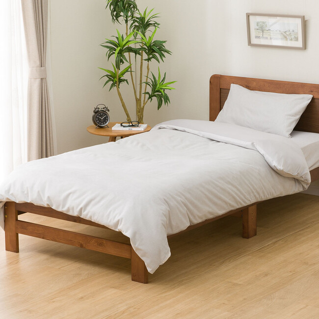 こちらも掛け布団カバーはふとんがズレにくい「ナノフロント(R)」生地を、裏返し面の上下に使用。ひもがないのでカバーの付け替えが簡単です。