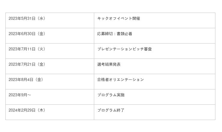 ■選考結果書類審査の結果及びプレゼンテーションピッチ審査の結果については、後日、応募対象者に通知します。