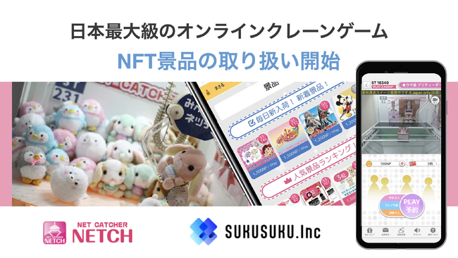 株式会社ネッチ・ジャパンが運営する日本最大級のオンラインクレーンゲーム「ネッチ」が、株式会社SUKUSUKU(所在地:東京都渋谷区、代表:合原 和也)と協力し、2023年5月よりNFT景品の取り扱いを開始するとともに、景品としてのNFTも幅広く募集いたします。さらに、第一回イベントとして限定10プロジェクトを募集開始いたします。
