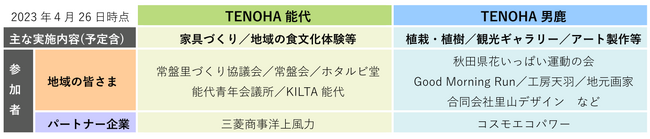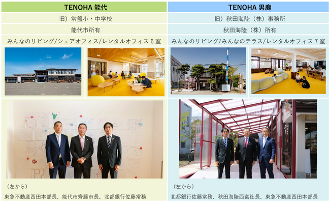 東急不動産株式会社(本社:東京都渋谷区、代表取締役社長:星野 浩明、以下、「当社」)は、秋田県能代市及び男鹿市において、参加型の新しい地域共生プロジェクトとして計画を進めてきた「TENOHA能代」及び「TENOHA男鹿」(以下「本プロジェクト」)を4月24日に開業いたしましたのでお知らせいたします。