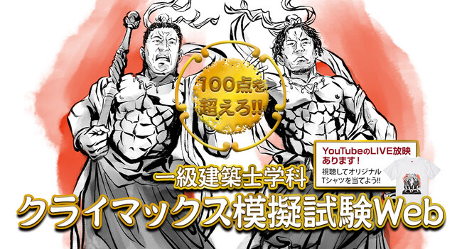 日建学院の人気講師[濱崎講師][小野川講師]の仁王像がデザインされたクライマックスTシャツを10名様にプレゼントいたします!2023年6月11日(日)20:00~ YouTube LIVE配信の解答解説講義内で発表する[キーワード]を入力して、どしどしご応募ください!■ご応募期間 2023年6月11日(日)21:30~6月19日(月)13:00■当選者の発表は商品の発送をもって代えさせていただきます。▼1級建築士学科 クライマックス模擬試験Webhttps://www.ksknet.co.jp/nikken/guidance/architect1q/road/mogi_g_night/index.aspx▼日建学院 公式サイトhttps://www.ksknet.co.jp/nikken/index.aspx【会社概要】商号:株式会社 建築資料研究社代表者:代表取締役社長 馬場 栄一所在地:〒171-0014 東京都豊島区池袋2-50-1創立:1969年(昭和44年)8月事業内容:建築・住宅・インテリア・資格等の専門誌を発行、建築関連資格取得のための学校運営 等URL:https://www.ksknet.co.jp/