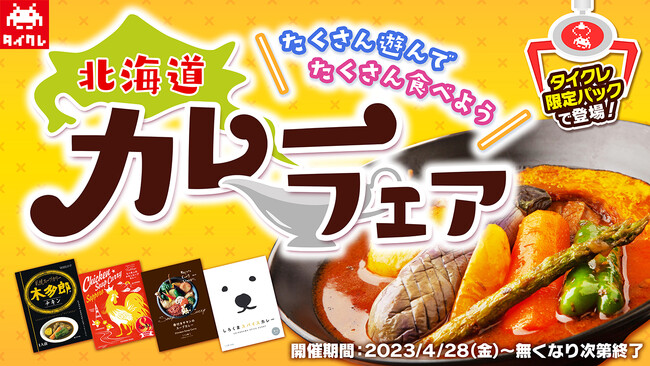 株式会社タイトー(本社:東京都新宿区)が運営するいつでもどこでもクレーンゲームが楽しめる「タイトーオンラインクレーン(以下タイクレ)」は、北海道の人気店が提供するカレーや道産の食材を使用した北海道カレーを楽しんでいただきたいをコンセプトに『北海道カレーフェア』を2023年4月28日(金)から開催いたします。