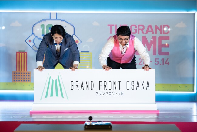 ゲームクリエイターとしても知られる野田さんはレトロゲームを自作しようとしたエピソード、村上さんは野田さんが楽屋でゲーム制作をしている話などで会場を沸かせ、その後、グランフロント大阪や「THE GRAND GAME」に関するクイズに挑戦しました。