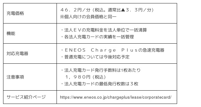 <ENEOS Charge Plus法人充電会員サービス概要>