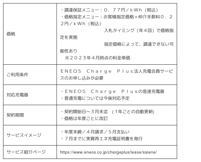 当社(社長:齊藤 猛)は、本日より、電気自動車(以下、「EV」)経路充電サービス「ENEOS Charge Plus」において、法人充電会員サービスを開始し、また、日本初※となる、非化石証書を仲介した「実質再エネ充電サービス」を同会員向けに開始しますので、お知らせいたします。