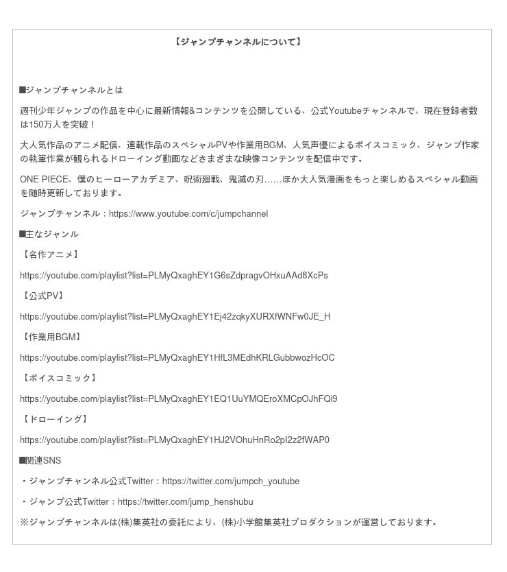 ・ジャンプチャンネル公式Twitter:https://twitter.com/jumpch_youtube